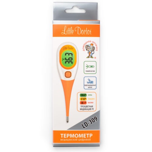 • Гибкий наконечник термометра идеален для травмобезопасного использования.