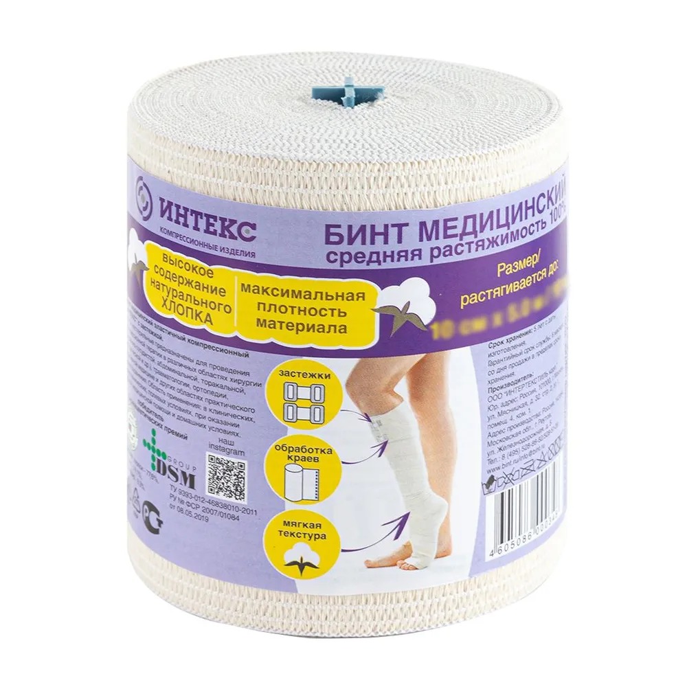 Эластичные компрессионные бинты «ИНТЕКС» средней растяжимости (растяжимость бинта не менее 100%) используют во время лечения острых и хронических заболеваний вен, варикозного расширения вен, травматических осложнений (вывихи, отёки, растяжения), лимфостаза различного генезиса и травм опорно-двигательного аппарата. Часто бинты со средней растяжимостью применяют после удаления вен и подобных оперативных вмешательствах, а так же, склеротерапии, в том числе катетерной.