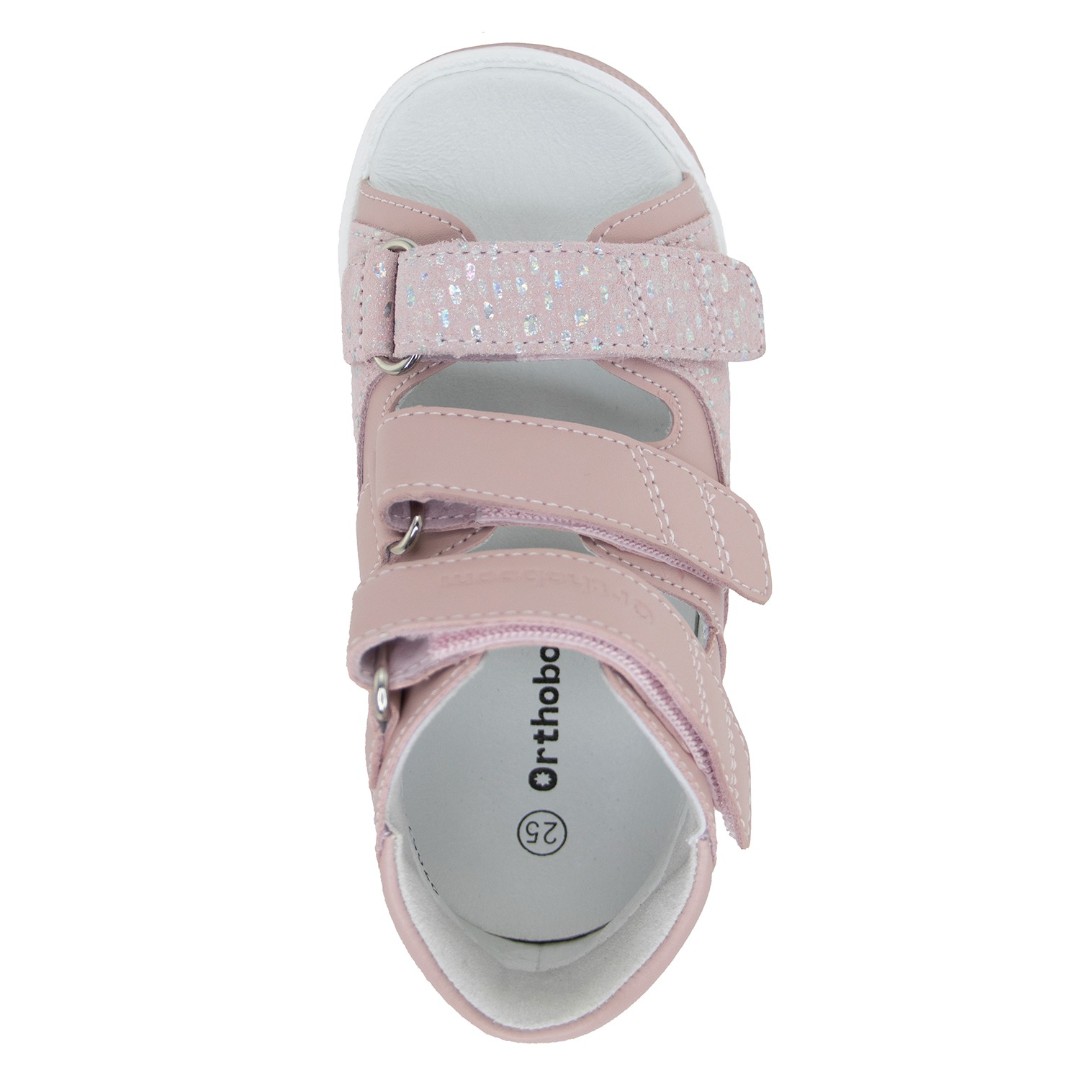 За счет широкой раскрываемости и удобной застежки обувь легко снимать и надевать, а нескользящая подошва снижает риск поскользнуться на любых типах поверхности. Ортопедические летние детские сандалии Orthoboom 27057-13 нежно-розовый прошли клинические испытания, модель сертифицирована для безопасного использования в детском возрасте.