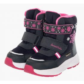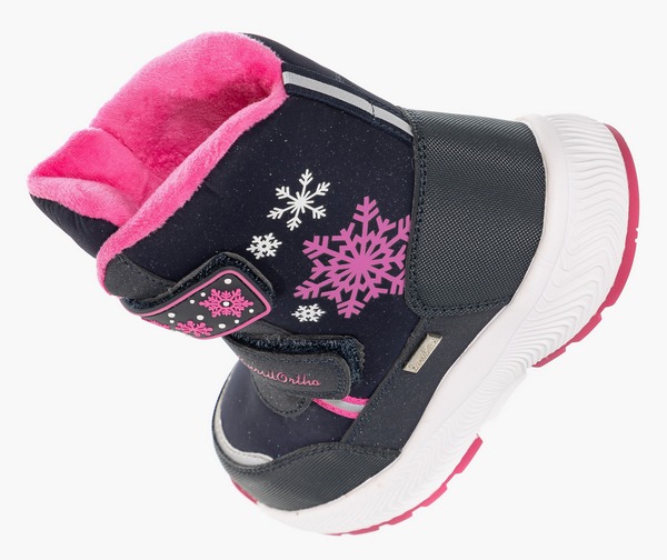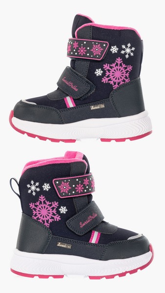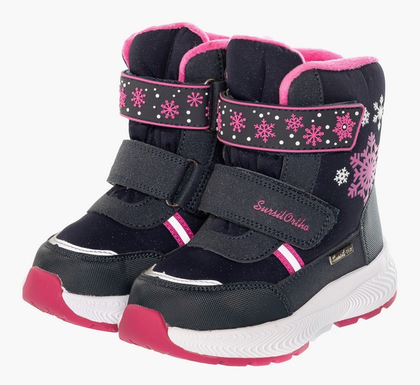 Ортопедические дутики детские для профилактики и коррекции плоскостопия. Зимние ботинки подходят для прогулок по городу в холодную погоду. Модель выполнена из водонепроницаемого текстильного материала в комбинации с искусственной кожи. Бесшовная подкладка из шерсти обеспечивает тепло и создает ощущение комфорта. Съемная анатомическая стелька имеет покрытие из шерсти. Формоустойчивый задник стабилизирует пятку, предохраняя стопу от завала. Легкая подошва с резиновым антискользящим протектором хорошо распределяет нагрузку по стопе, гасит ударные вибрации. Липучки Велкро для упрощения надевания. Обувь зарегистрирована в Росздравнадзоре как мед. изделие.