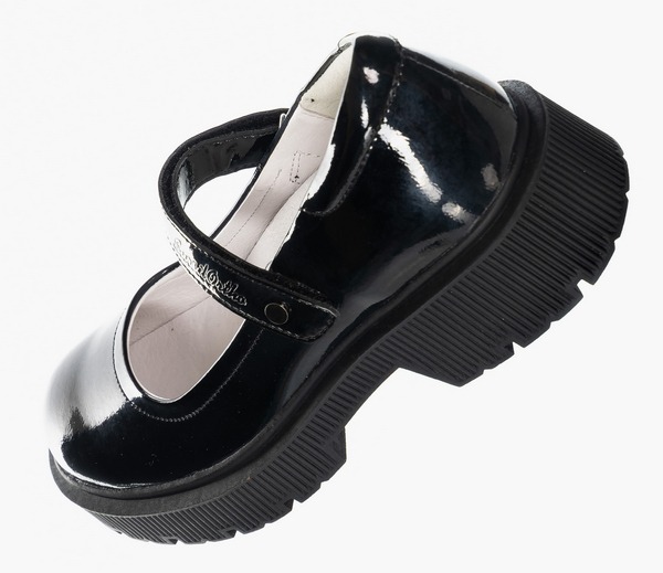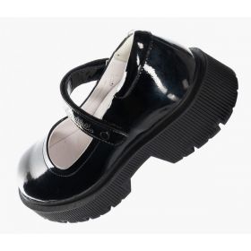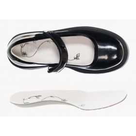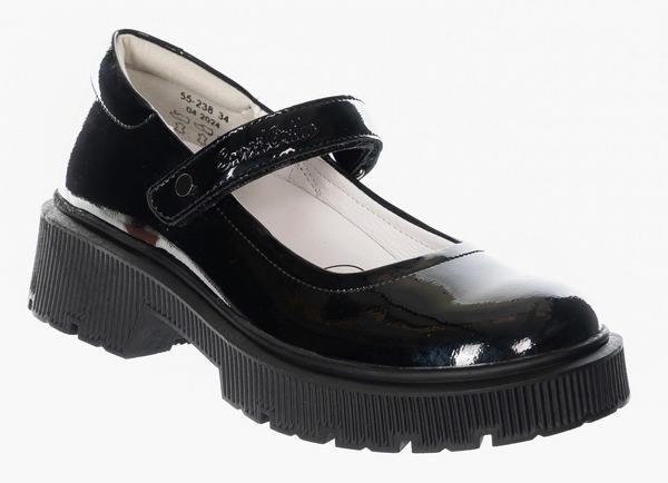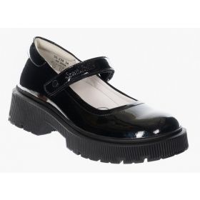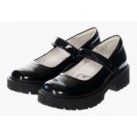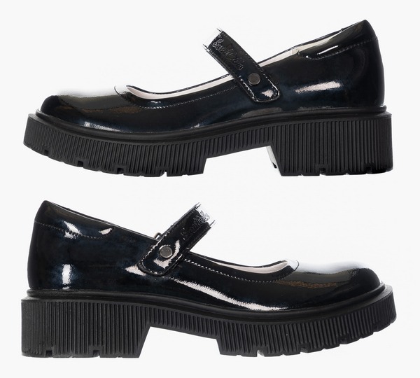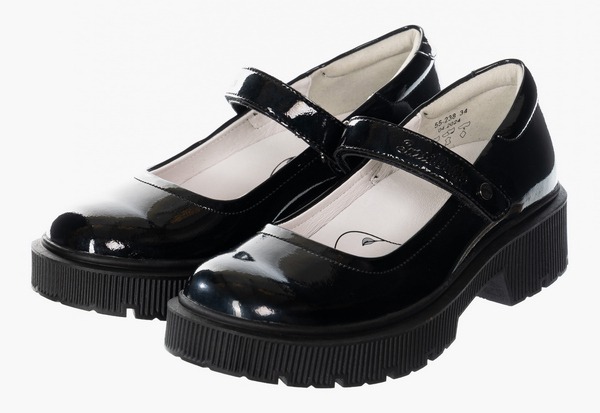 Ортопедические туфли для профилактики и коррекции плоскостопия стоп. Модный дизайн туфель на толстой подошве понравится девочкам школьного возраста. Формоустойчивый задник ставит пятку в физиологически нейтральное положение, помогая формировать естественную биомеханику шага. Съемная анатомическая стелька обеспечивает упругую поддержку стопы. Модель выполнена из натуральной лаковой кожи. Бесшовная кожаная подкладка и мягкий кант сзади исключают возникновение мозолей. Амортизирующий и износостойкий материал подошвы (ТЭП) поглощает ударные нагрузки, повторяя естественное движение стопы при ходьбе. Липучки Велкро для удобства надевания обуви ребенком.