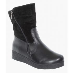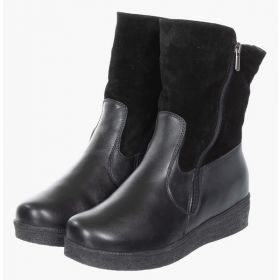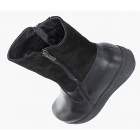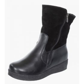 Ортопедическая обувь Sursil-Ortho из натуральной кожи и спилка. В современном дизайне и в стильном черном оттенке, хорошей комфортной полнотой и с круглым анатомическим носом, простой регулировкой молнии, в ней Вы найдете прежде всего, комфорт и практичность в носке. Внутренняя меховая подкладка прекрасно сохраняет внутренние тепло, а ваши ноги сухими.