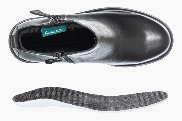 Стильные ортопедические ботильоны Sursil Ortho - отличный вариант комфортной и элегантной обуви на осень и весну. Модель рекомендована для профилактики болезней ног (плоскостопие, плоско-вальгусные стопы, пяточные шпоры, натоптыши и болезненные «косточки»). Формоустойчивый задник фиксирует пятку, убирая лишнюю подвижность и формируя правильную биомеханику шага. Съемная ортопедическая стелька с супинатором для поддержки сводов стопы. Модель выполнена из натуральной кожи, хорошо держит форму. Для профилактики натирания текстильная внутренняя подкладка. Гибкая, амортизирующая подошва из резины. Для удобства надевания и большой раскрываемости обуви имеются две молнии по бокам. Ботильоны в лаконичном классическом дизайне хорошо сочетаются с разными стилями.