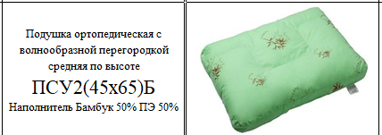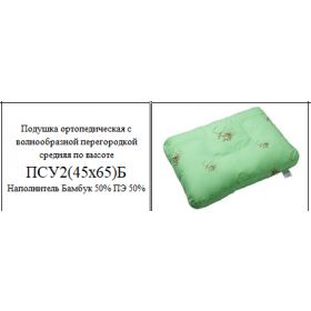 Подушка ПСУ2 (45х65) Б имеет внутреннюю перегородку в форме волны, делящую изделие на две части, боковую деталь, которая придает подушке дополнительный объём, и разные параметры по плотности набивки. Это позволяет, придав подушке округлые формы, обеспечить максимально комфортное положение головы, лежащего как на спине, так и на боку. Подушка подойдет в использовании для людей среднего роста. Подушка наполнена волокнами бамбука, которые обладают антибактериальными и теплоизолирующими свойствами, смешанными в равных пропорциях с полиэфирными волокнами.