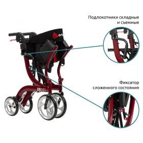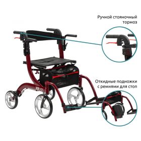 Ходунки Ortonica XR101 с функцией трансформации в кресло-каталку обеспечивают комфортное передвижение как при самостоятельных прогулках, так и с сопровождающим лицом. Ручные двухпозиционные стояночные тормоза обеспечивают мягкое притормаживание в верхнем положении и полную фиксацию в нижнем положении. Откидные подножки и подлокотники, мягкий упор для спины и мягкое сиденье делают отдых более удобным за счет возможности использовать ходунки в качестве стула и/или кресла-коляски. Съемная вместительная корзина под сиденьем удобна для транспортировки покупок и личных вещей.