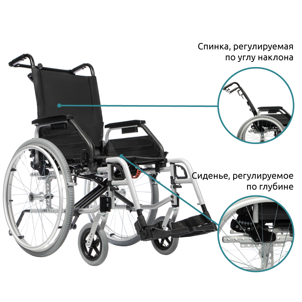 - Съемные колесные антиопрокидыватели, регулируемые по длине;