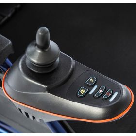 Инвалидная электрическая кресло-коляска Ortonica Pulse 110 с антиопрокидывателем и USB-выходом для зарядки мобильных устройств. Перемещение коляски осуществляется с помощью джойстика, а также может совершаться сопровождающим лицом.