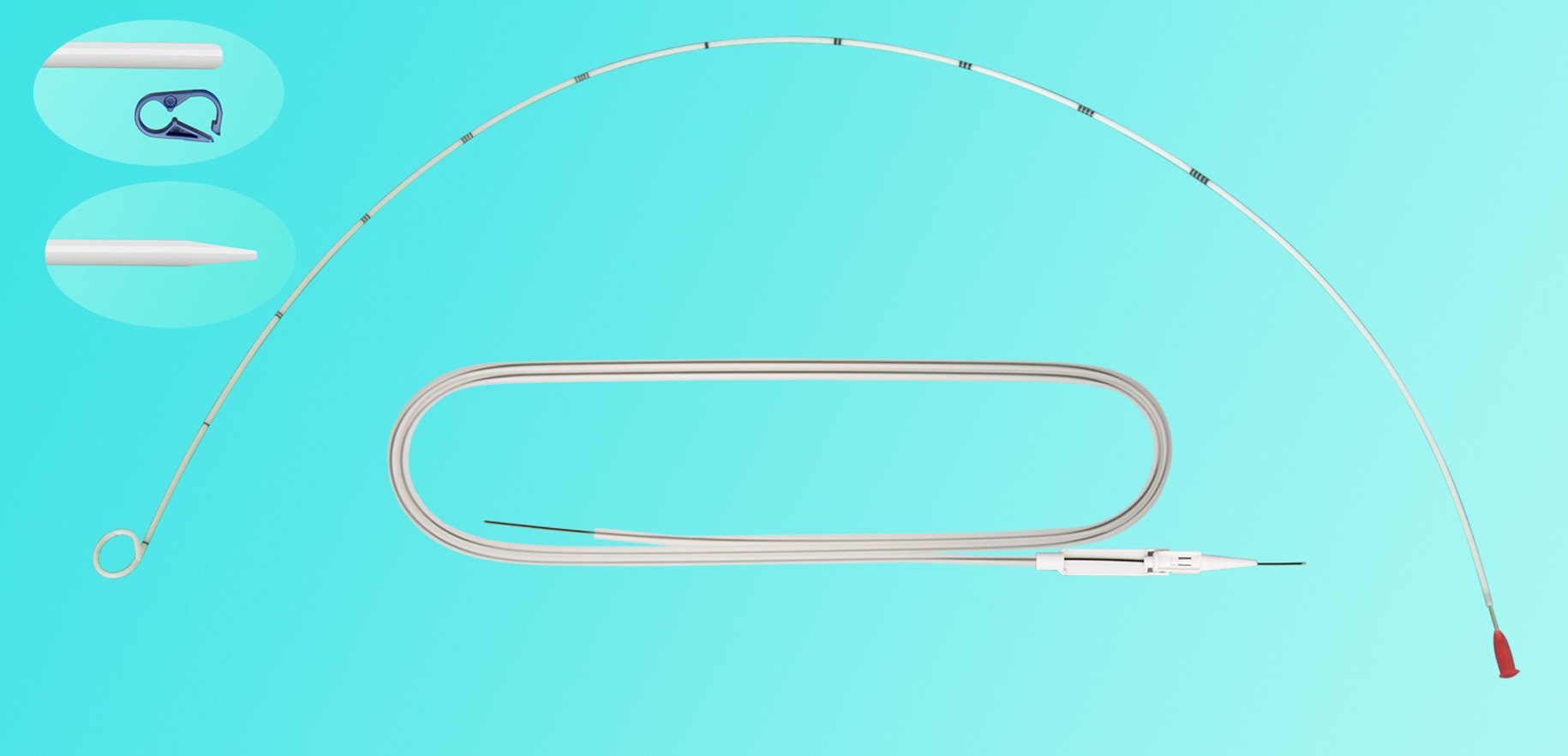 Наборы стентов мочеточниковых с двумя "свиными хвостами" с закрытым концом из полиуретана рентгеноконтрастного , проводником, толкателем и фиксатором: