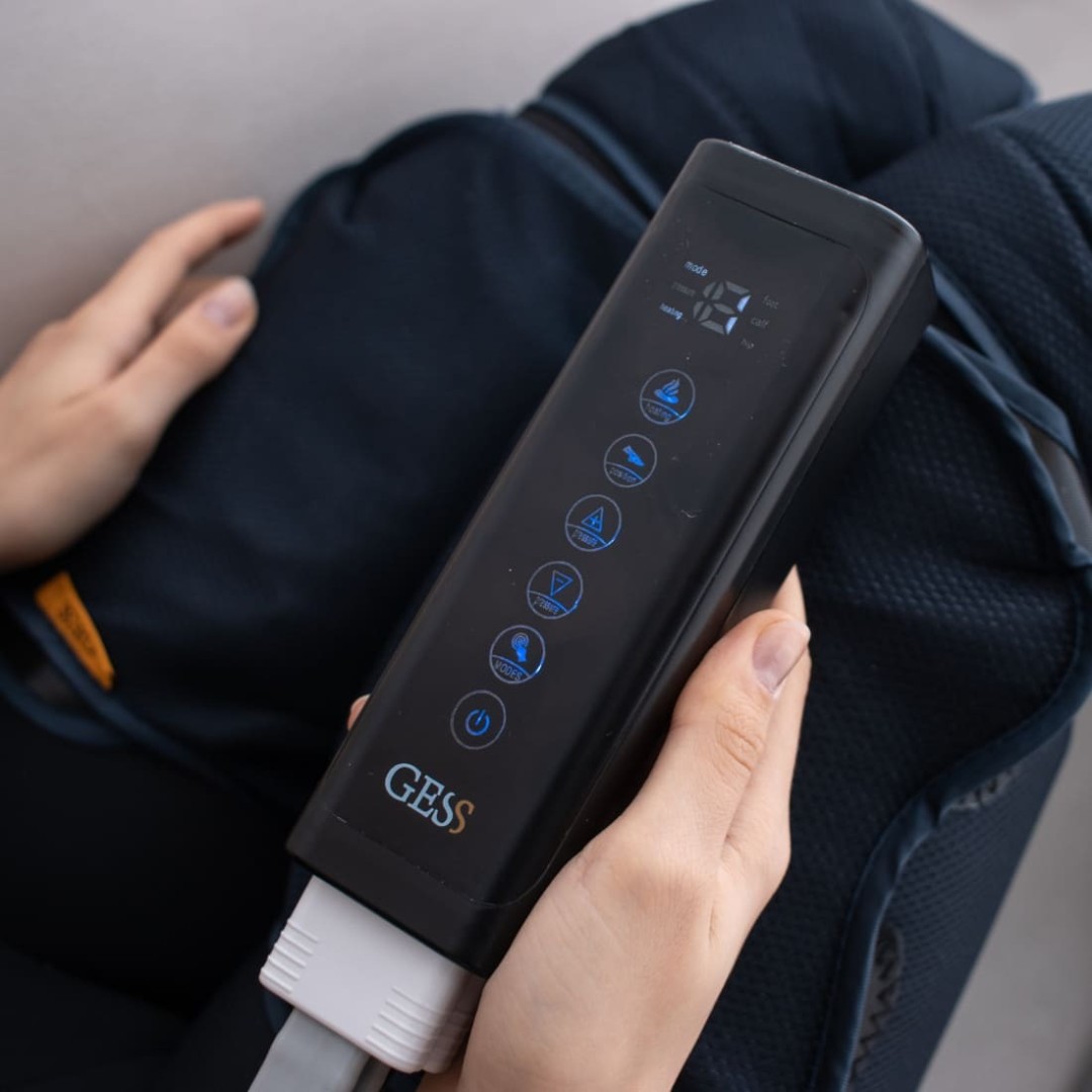 Массажер для ног EMMY для домашних сеансов прессотерапии. Лимфодренажный массажер выполняет воздушно-компрессионный массаж стоп, икр, бёдер и решает большинство проблем с ногами: устраняет судороги в икрах, отёки, целлюлит, ломоту, усталость, дискомфорт в мышцах. Максимально эффективен в начальной стадии варикоза. Оздоровительный эффект достигается за счёт давления воздуха, который поступает в отсеки изделия и выполняет «выжимающие» движения. Один сеанс прессотерапии сопоставим с 20 процедурами ручного массажа. Компрессионный массажер для ног оснащён функцией инфракрасного прогрева, которая усиливает эффективность процедуры. 3 программы лимфодренажного массажа позволяют выбрать интенсивность давления и прогрева, а также область воздействия. Есть прогрев в области стоп и коленей. Аппарат для прессотерапии незаменим при переутомлении ног, хождении на высоких каблуках, в неудобной обуви, при стоячей работе и застойных явлениях при сидячем образе жизни.